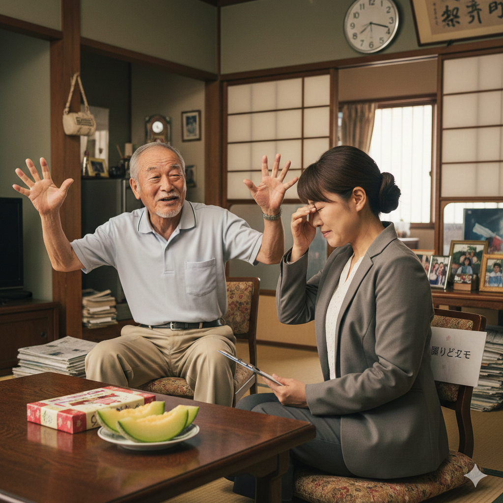 - 弊害: 自慢話で30分消費されれば、本来聞くべき「夜間の不穏」や「認知症の周辺症状」を確認する時間が削られます。調査員はあなたの自伝を書きに来たライターではありません。 貴重な税金を使って動いている「仕事」の邪魔をしないでいただきたい。これが本音です。