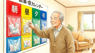 一目で今日の日付と薬の有無が分かり、飲み終わった後にカレンダーに直接チェックを入れる。このシンプルさこそが、混乱の中にいる本人と、忙しい介助者の双方にとって最もミスが少なく、直感的な解決策となります。